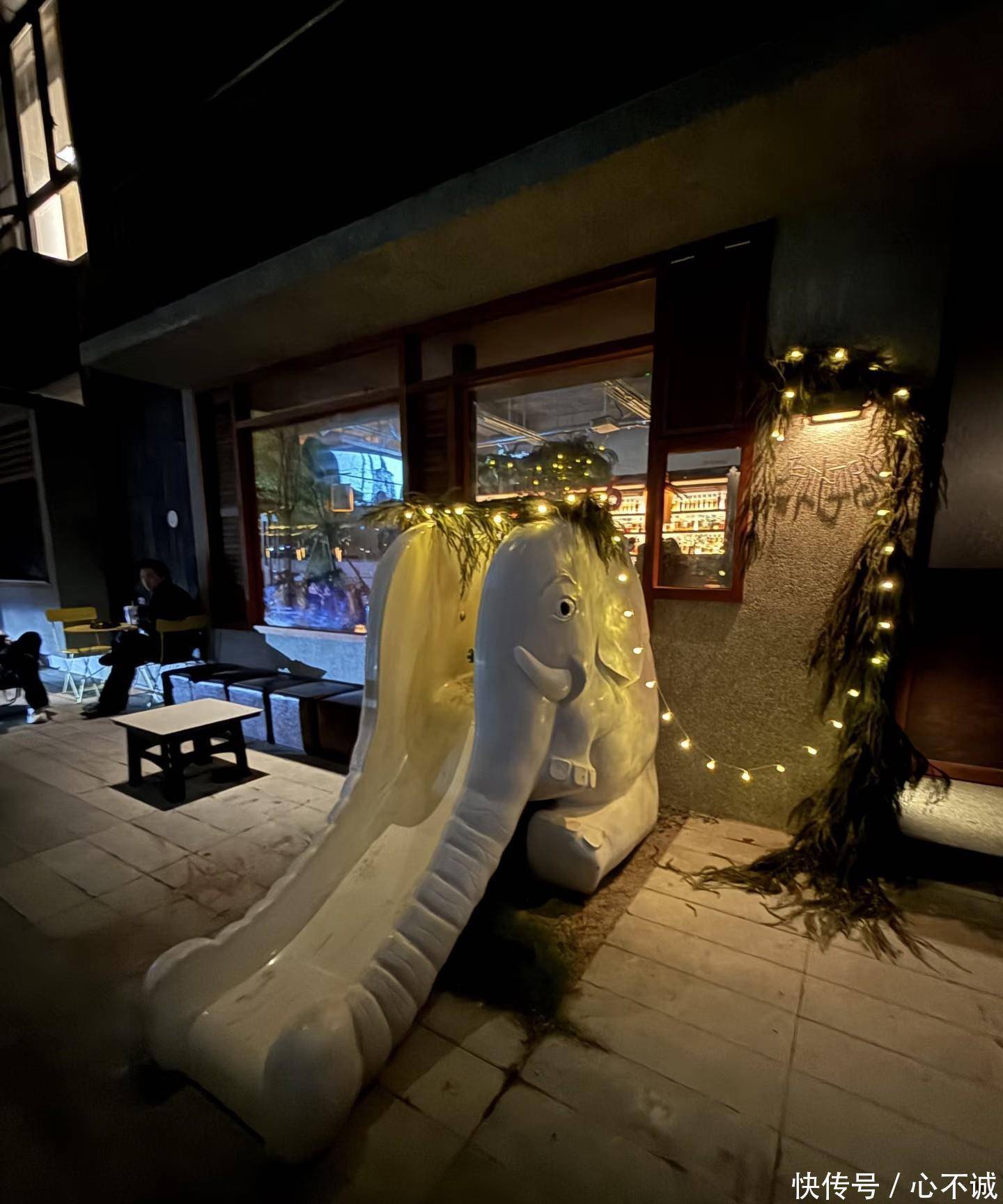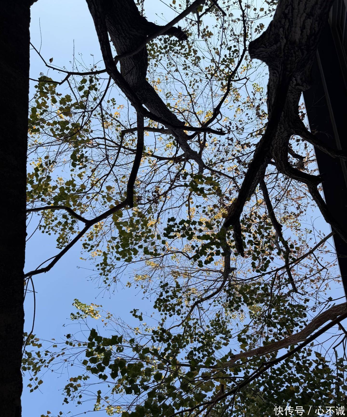 街边的大象滑梯、亮着暖黄灯光的白塔,还有老树枝桠间的澄澈蓝天,都成了她镜头里最美的风景。